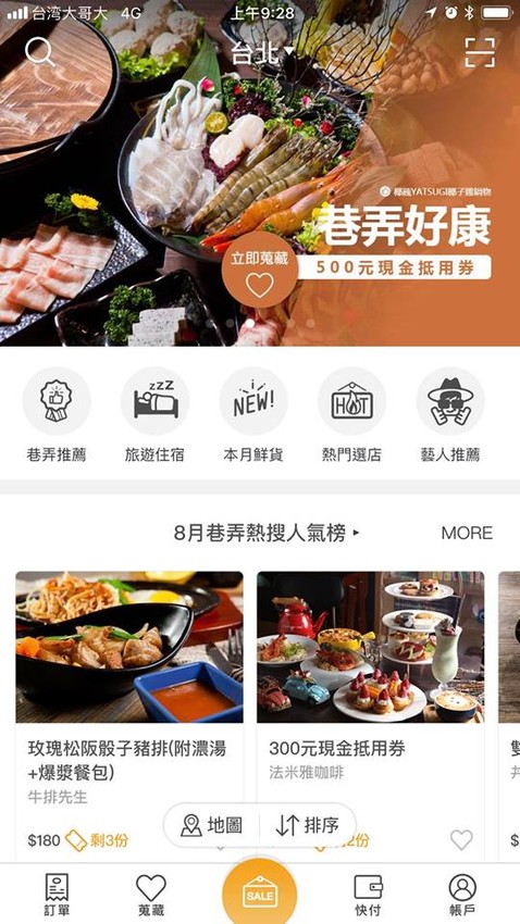 可以先下載巷弄APP來使用,還有不定時的半價優惠,吃美食搶優惠的好地方