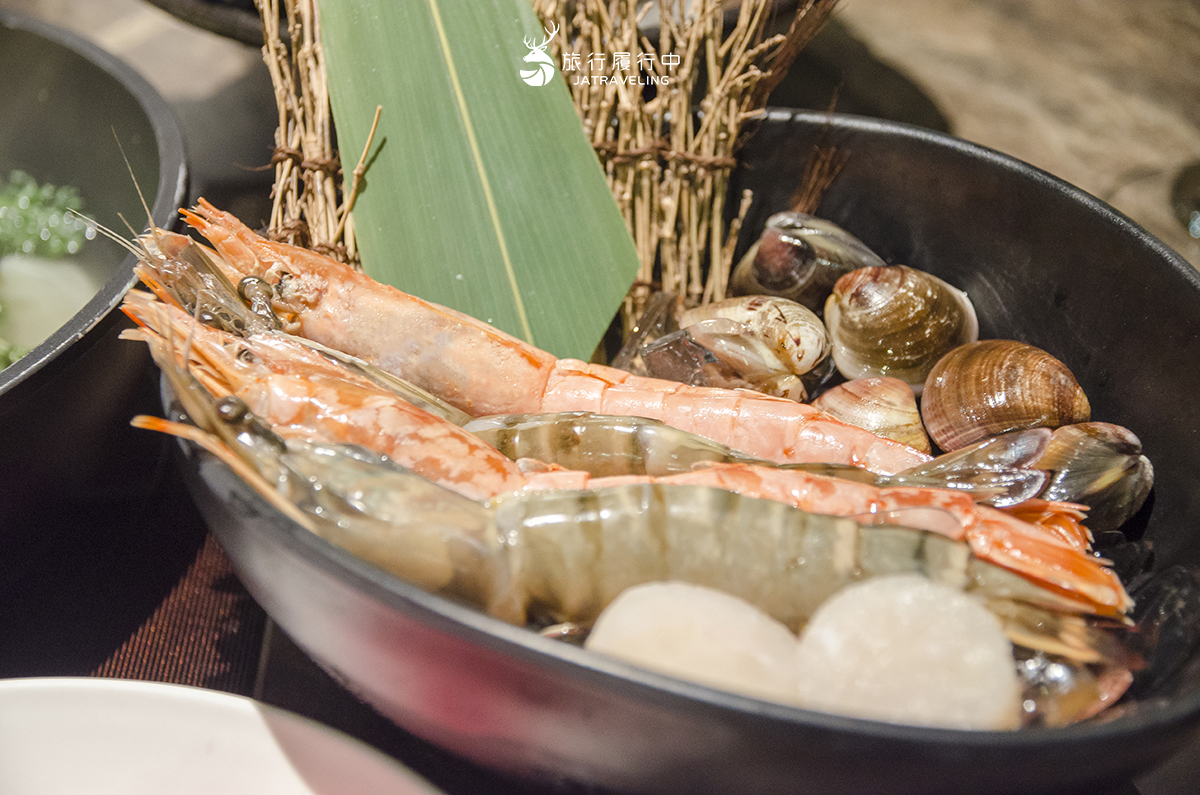 └ 海鮮拼盤海鮮則有天使紅蝦、草蝦、蛤蜊、干貝等,加上配餐的白飯或烏龍麵,原本以為份量精緻不多,但以男生來說,吃到這裡已經有八九分飽了。