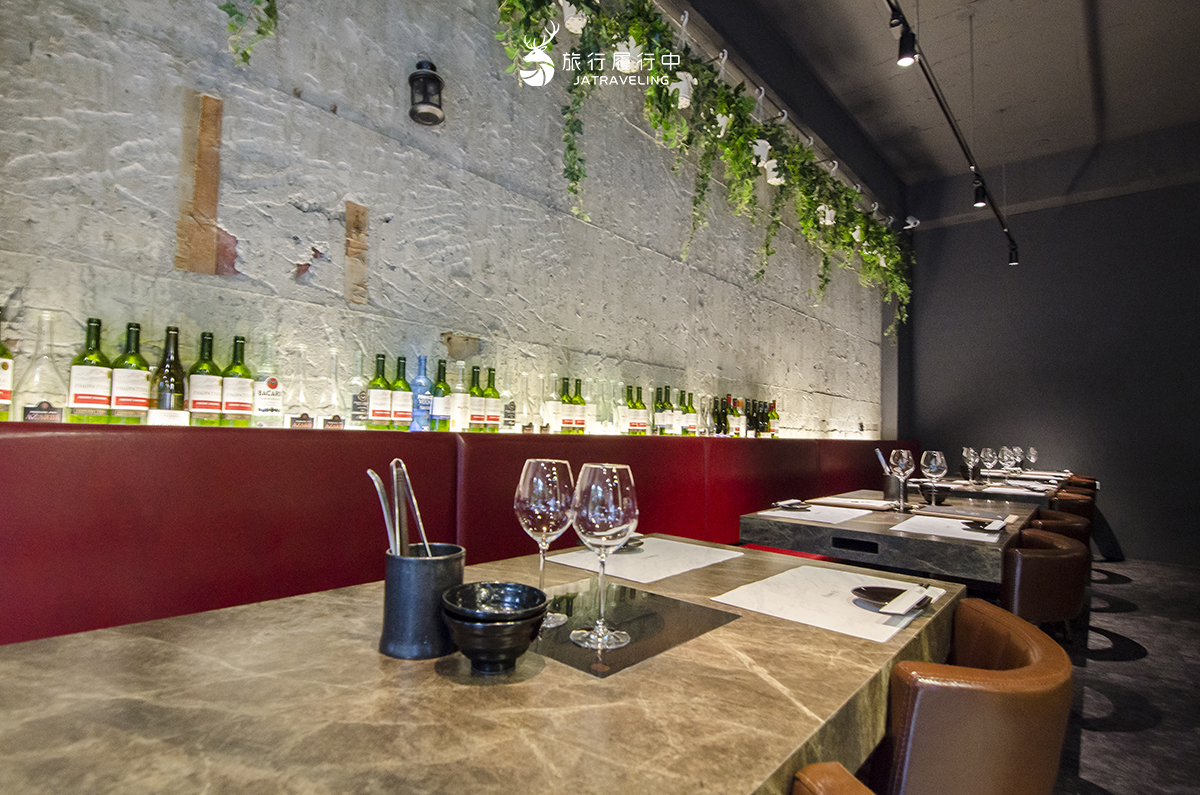 └ 玲瑯滿目的酒品一進門的第一印象,絕對不會聯想到火鍋!玲瑯滿目的酒品加上桌上的高腳杯,整個氛圍就像是西餐廳,再擺上一組刀叉,真的還以為要吃排餐了。