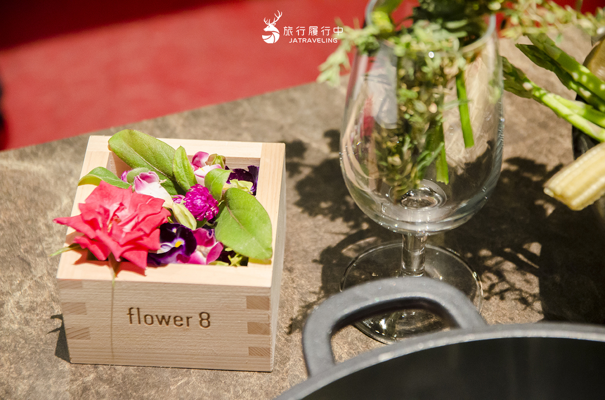 花吧Flower8的鍋物之所以特別,是因為除了蔬菜熬煮高湯以外,更加入了有機花與香料,讓湯頭多了一層淡淡的花香,趁鍋物入鍋之前,忍不住先喝上好一碗。