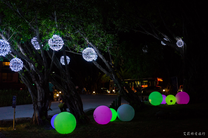 一走進碼頭就能看到樹上的燈飾和七彩變化的光球,讓人好興奮呀