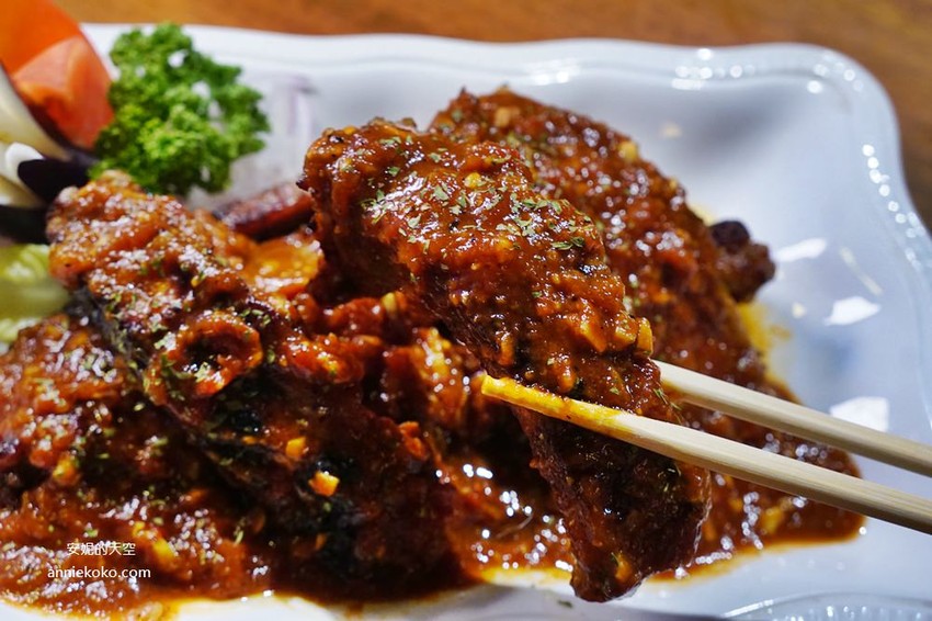 豬肋排拿起來就別客氣了,這個要狂啃才過癮啊,豬肋排輕輕一咬便骨肉分離,加上濃郁的醬汁,真的會讓人吮指回味啊。