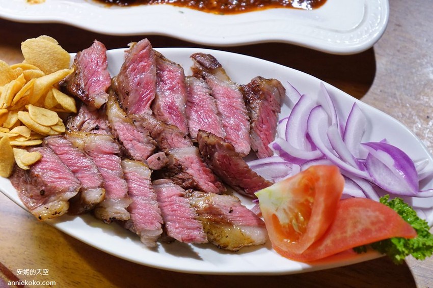 這盤牛小排一上桌,差點就要破戒啦,那粉嫩嫩的牛肉也太誘人了,店小二的牛肉品質都是極具水準,外皮烤的香酥,裡頭竟還能保持粉嫩的色澤,挖呼,搭配上烤過的蒜片以及生洋蔥,根本是絕配,來店小二可別錯過牛肉,跟我一樣不吃牛的朋友還有其他美味的選擇喔。