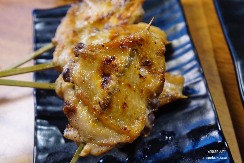 雞翅輕輕一拉便骨肉分離,雞肉非常軟嫩,完全不乾柴,我覺得店小二的烤肉技術相當巧妙,所有串燒都不會過鹹,但口感上又十分入味,非常涮口,會讓人想要一口接一口大快朵頤啊。