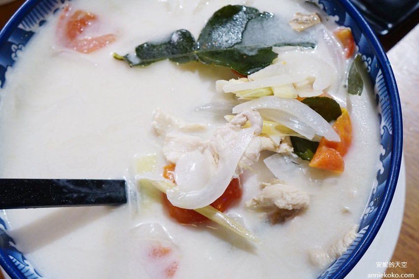 這一鍋雞湯用了滿滿的蔬菜熬煮,喝起來很是清甜,淡淡的椰漿氣味與蔬菜的交融,讓整碗湯爽口不已,雞肉吃起來一點也不乾柴,很愛蔬菜與椰漿交融的口感,喝在嘴哩,甜在喉間,暖在心頭。