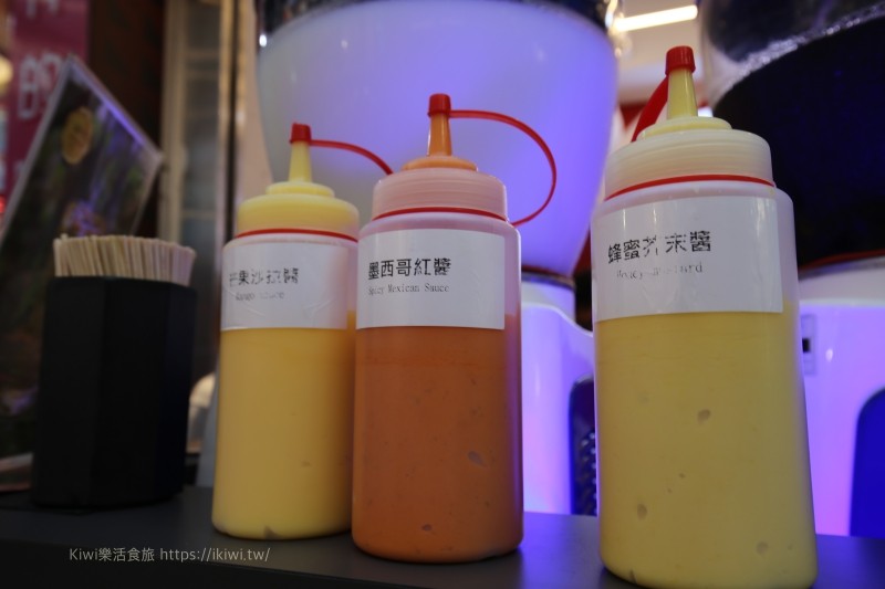 蝦帕SHRIMPPA在醬料區也有三種醬料,芒果沙拉醬、墨西哥紅醬、蜂蜜芥末醬,很美式的感覺,不像我們以往吃炸物只能沾沾胡椒鹽、辣椒粉的,整個跳脫傳統也讓我們喜愛不已。