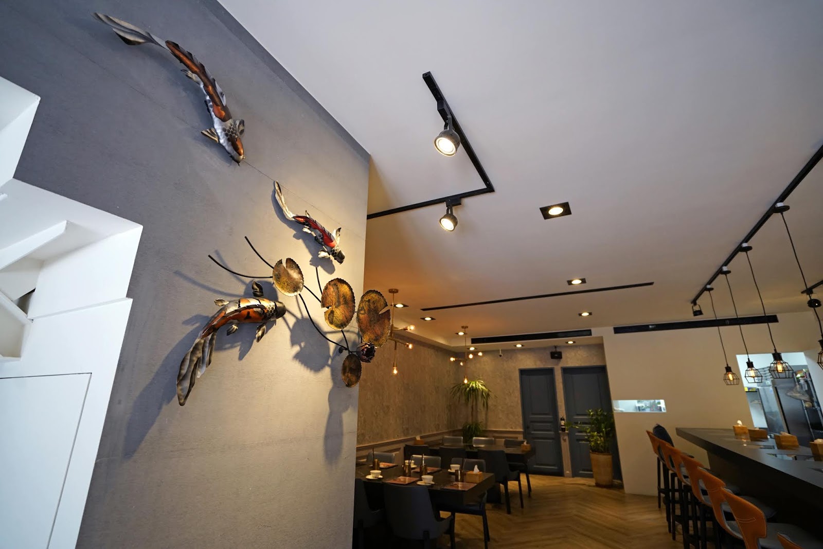 每個座位的空間又大又舒適,桌子之間也有足夠的桌距,我們這次坐在吧檯區,在寬敞的桌面擺滿琳瑯滿目的海陸食材,在靜謐的氛圍裡度過愜意的午餐時光。