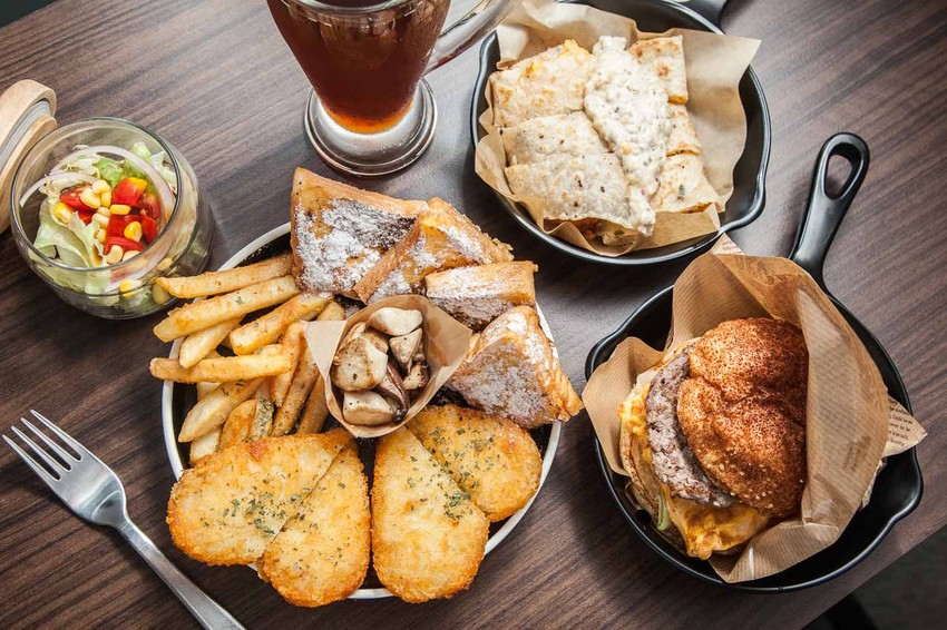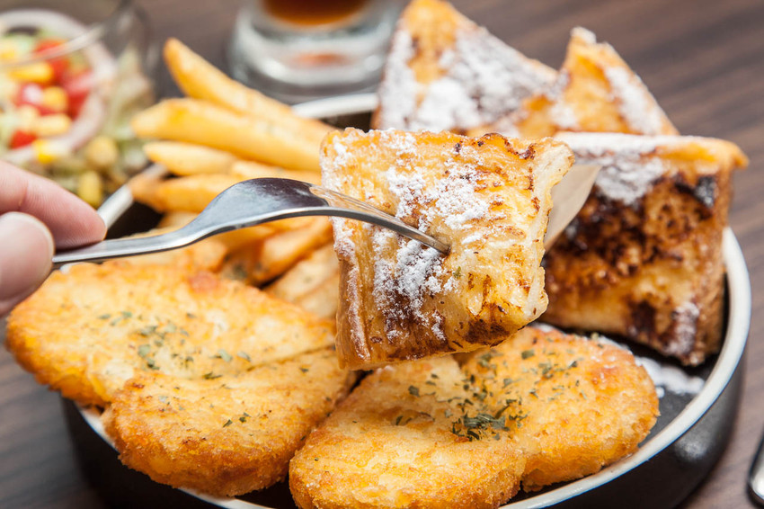 相當浪漫的拼盤名字,配料十分豐富,有法式吐司、薯餅、薯條、炒菇、生菜沙拉)