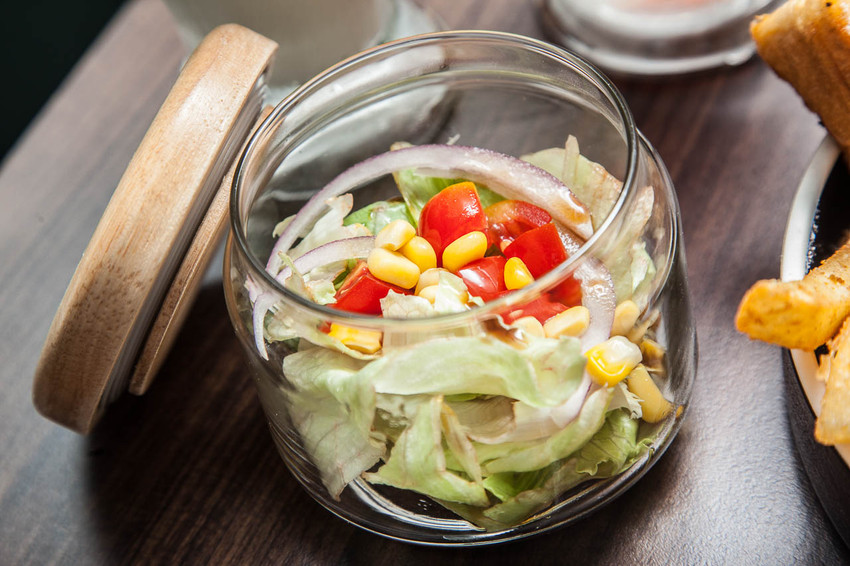 生菜沙拉是用玻璃罐裝,現在還蠻流行用玻璃罐來裝沙拉,山的另一邊連日式沙拉醬都是自己做,酸味不似一般市售醬料那樣強烈,圓潤溫和,搭配爽脆的生菜很是開胃呢