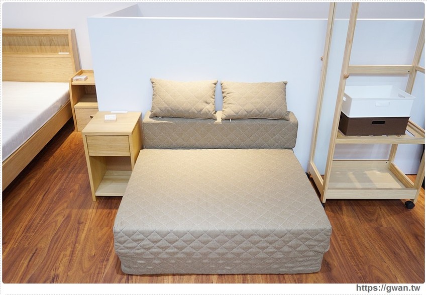 攤開來是沙發也是床,除了融入撞色元素還送拼布枕頭唷~