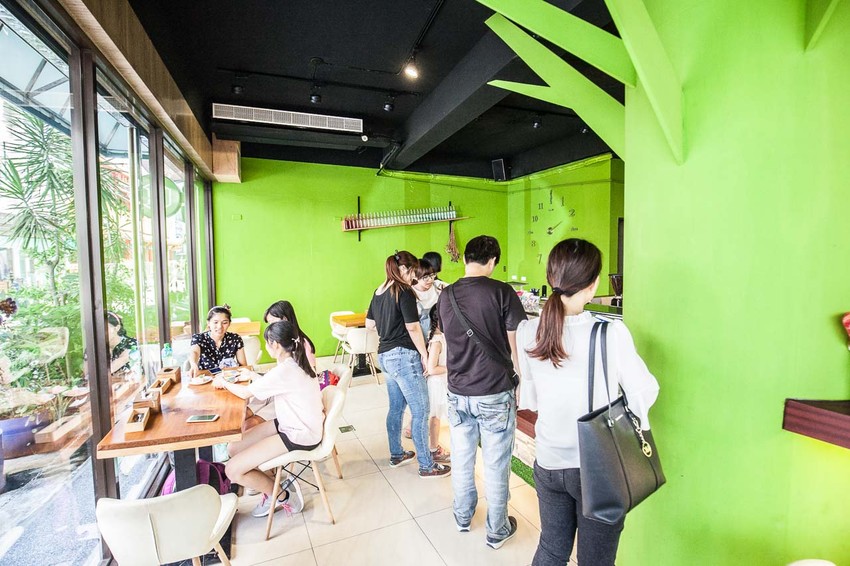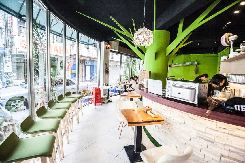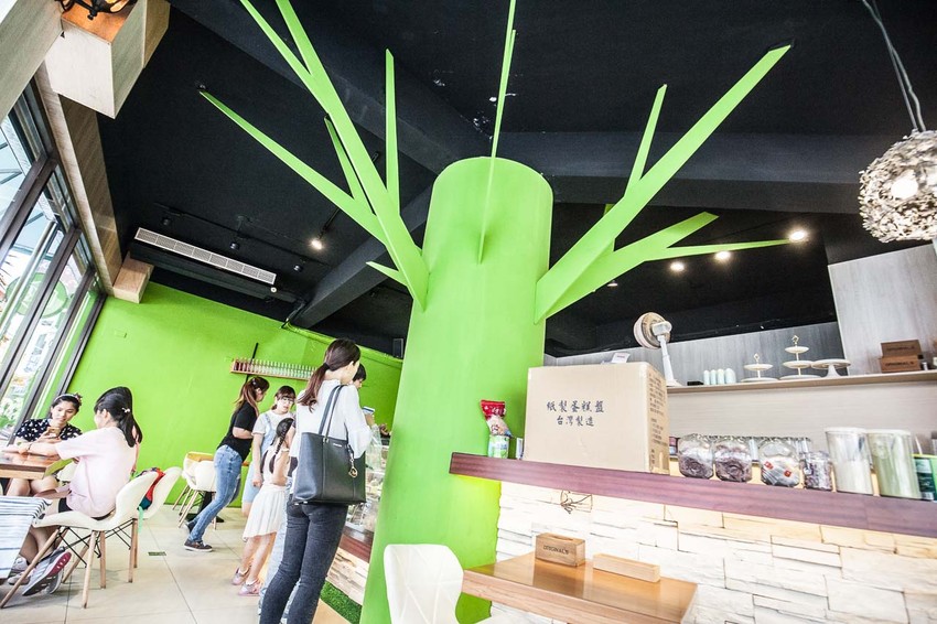 店內中間還有一棵大樹,這也是MOFA魔法氛子特意設計的,搭配同樣也是綠色系的牆面,感覺就像坐在森林樹下野餐似的