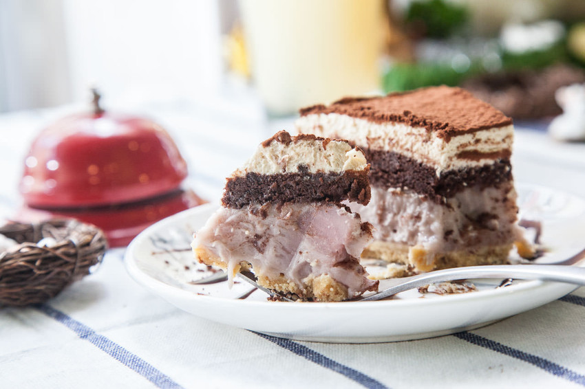提拉米蘇甜中帶苦,入口即化,下面則是帶有芋頭塊的特製芋頭餡,芋頭餡吃起來帶點微微的甜度,塊狀芋頭Q中帶軟,跟提拉米蘇一起吃,芋頭恰好中和提拉米蘇的苦味,綿密又帶有層次的口感,超特別的!