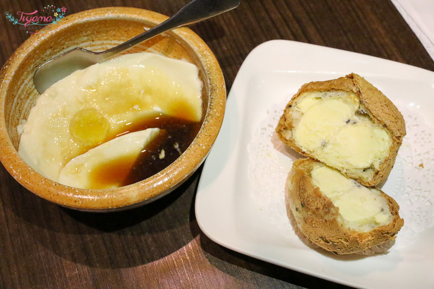 甜點選擇:韓國冰火波蘿泡芙、黑糖柚香豆腐花