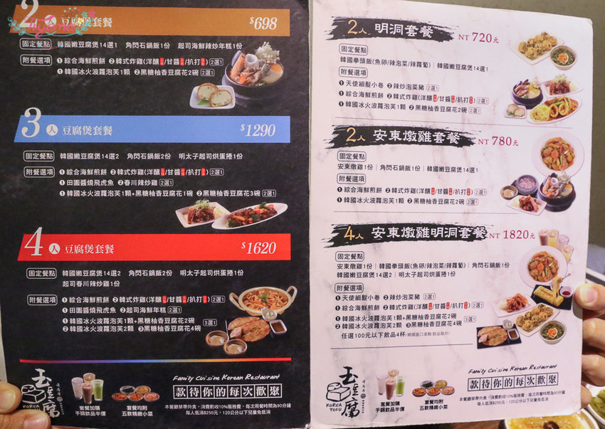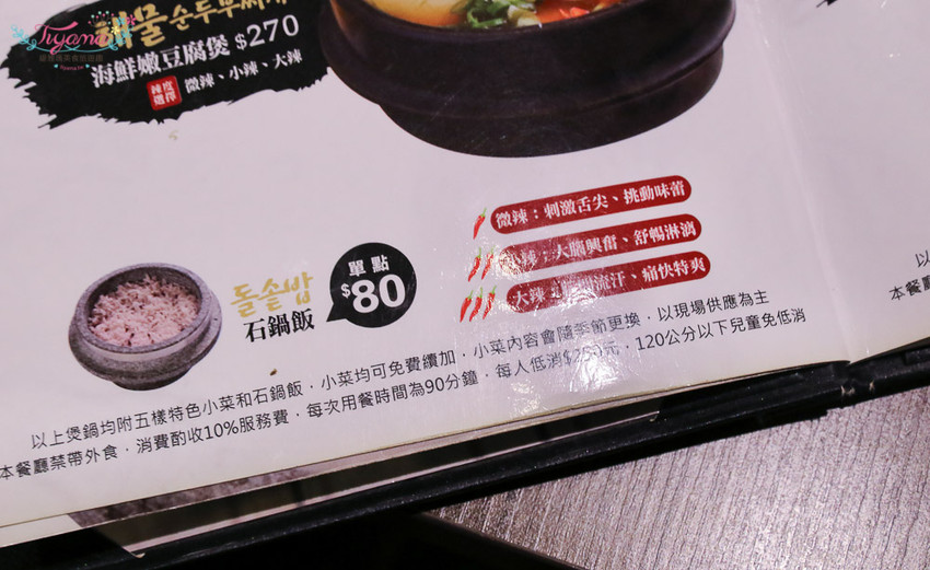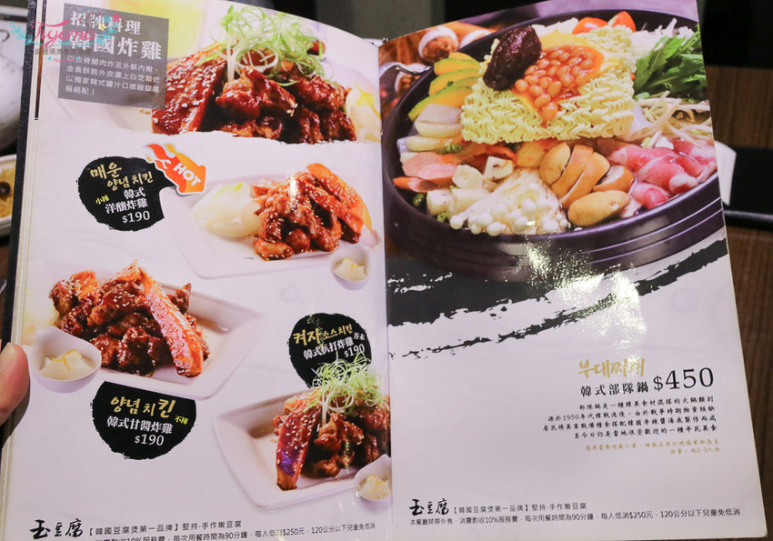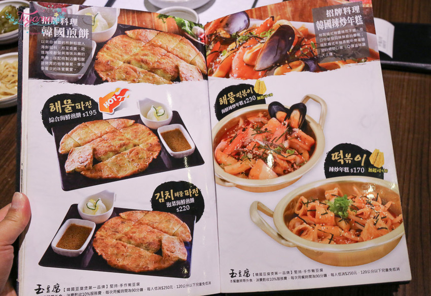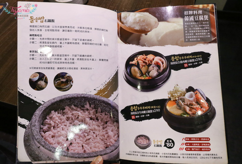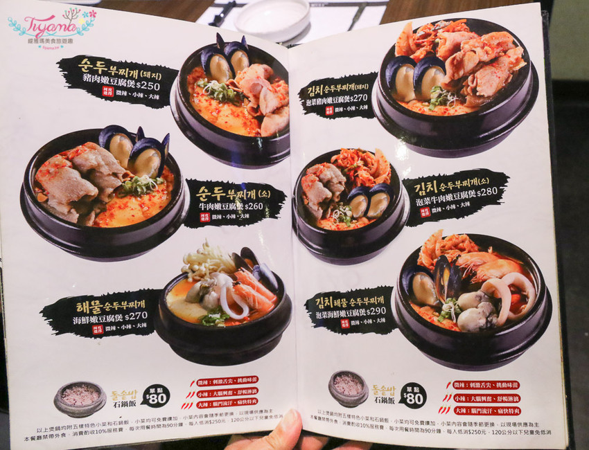 14種韓國手工豆腐煲任你選擇,每人最低消費$250/120cm以下免低消,用餐時間90分鐘,需加收10%服務費。