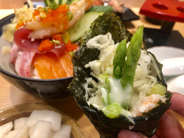 元月老闆的海膽給的很多,一點都不小氣,一百塊就可以吃到這麼棒的手捲,大推無誤!