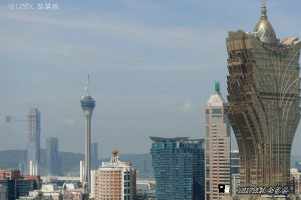 站在澳門至高點,可以遠眺尖形的澳門旅遊塔和澳門地標,