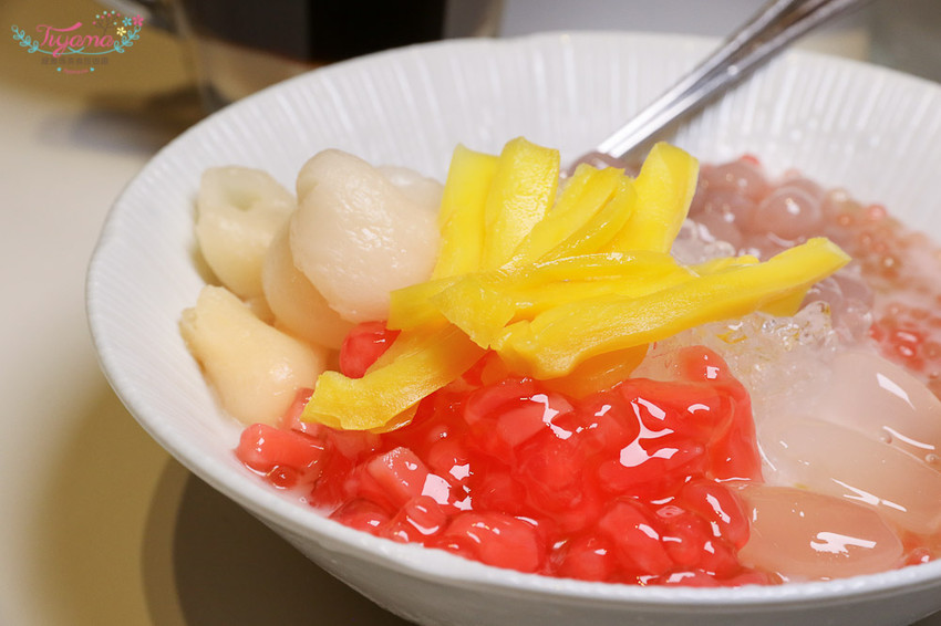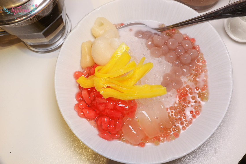 鮮黃波羅蜜和亮紅荸薺讓這道摩摩喳查成為冰品界的網美。