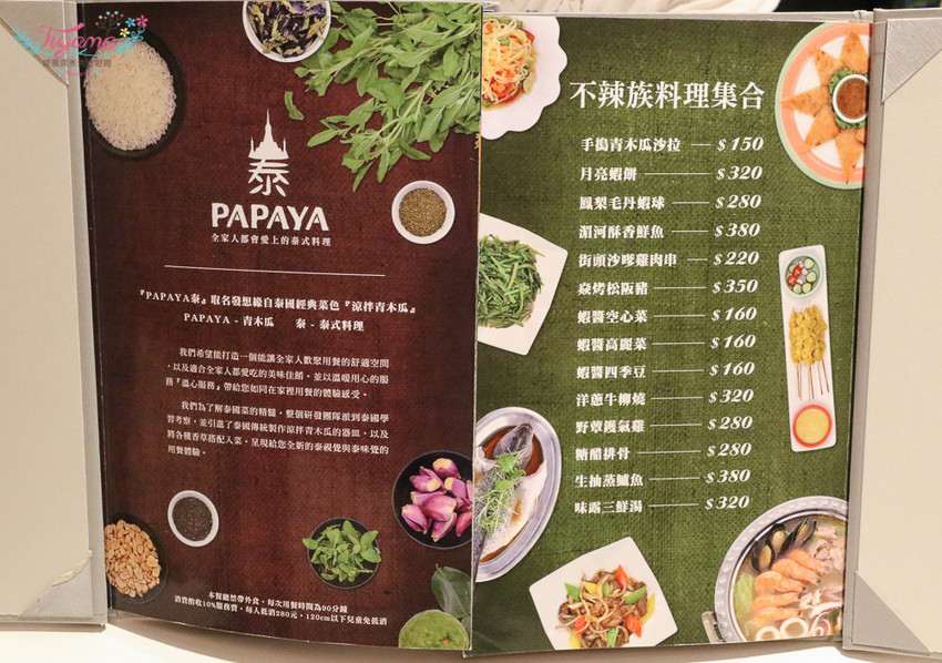 家庭聚餐個人很推薦來PAPAYA泰,帶小朋友來有很多不辣的料理可挑選,完全不用擔心!!餐廳貼心在菜單上整理了”不辣族料理集合”