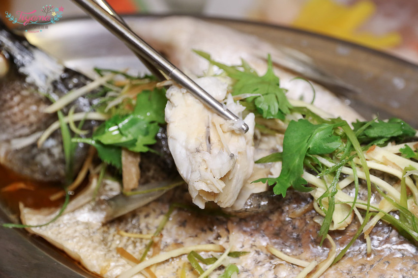 台味版的「生抽蒸鱸魚」連小朋友都愛,肉質鮮嫩細密,沾上香鹹醬汁,太幸福惹,我連嘴邊肉都不放過~這麼大尾的鱸魚,多點人吃也沒問題。