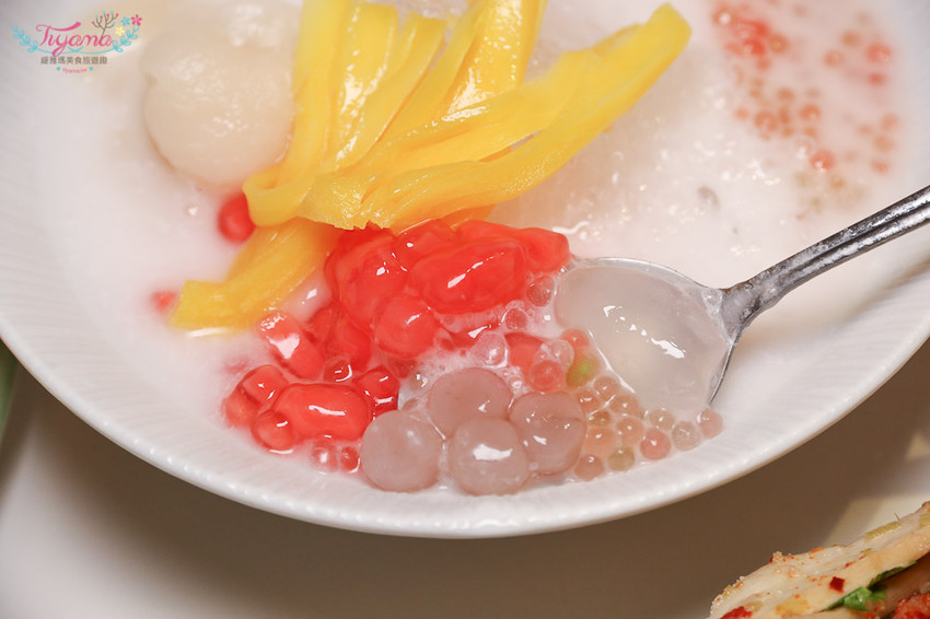 刨冰放進,波羅蜜、紅毛丹、荸薺、亞達枳、彩色西米露、芋丸珍珠、椰奶,豐富香甜的配料,繽紛消暑~深受大家喜愛!!