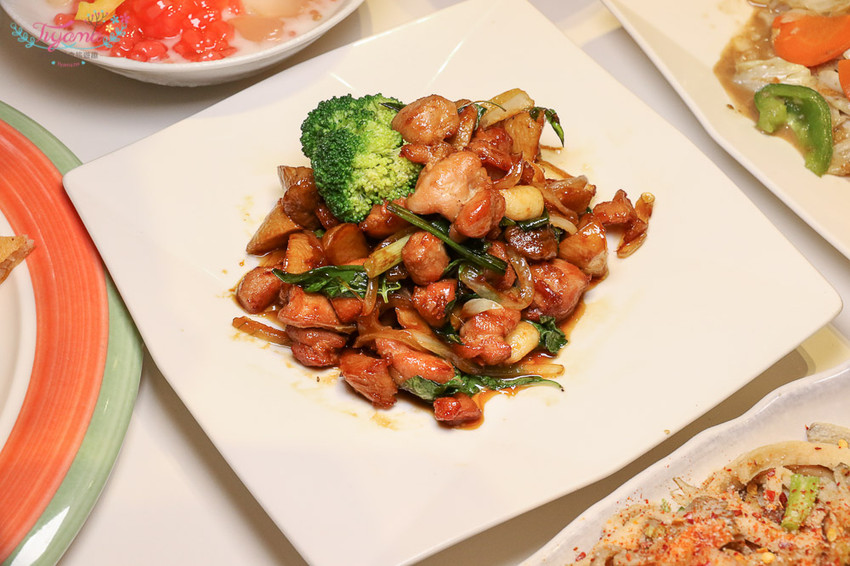 「野蕈鑊氣雞」的調味很類似三杯雞的味道,多了杏鮑菇和洋蔥,增添香氣…讓我們好驚喜!!無論是雞肉塊或是杏鮑菇塊,入味又下飯,大家吃得津津有味!