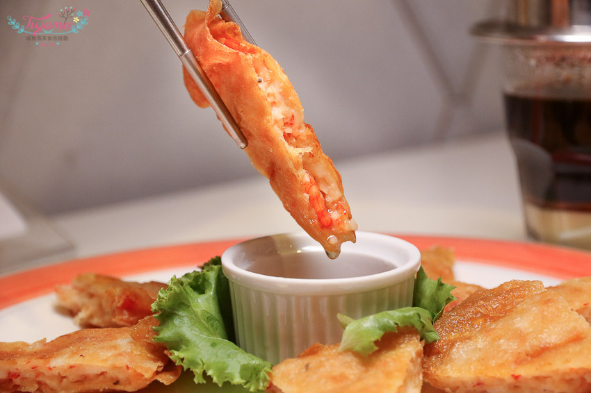 店內必點的招牌菜「月亮蝦餅」,厚實蝦餅,吃得到整隻蝦仁…濃郁鮮美,可見蝦漿的比例用量很多,沾上特製蜂蜜酸甜醬,爽口去膩,美味度大大提升。