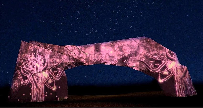 在這巨大的拱門,在暑假有光雕秀的活動,特別邀請為屏東萬金教堂打造光雕的設計師-徐志銘,跨界