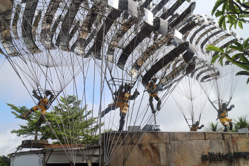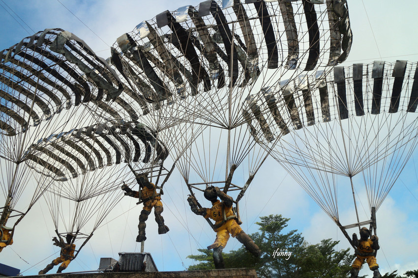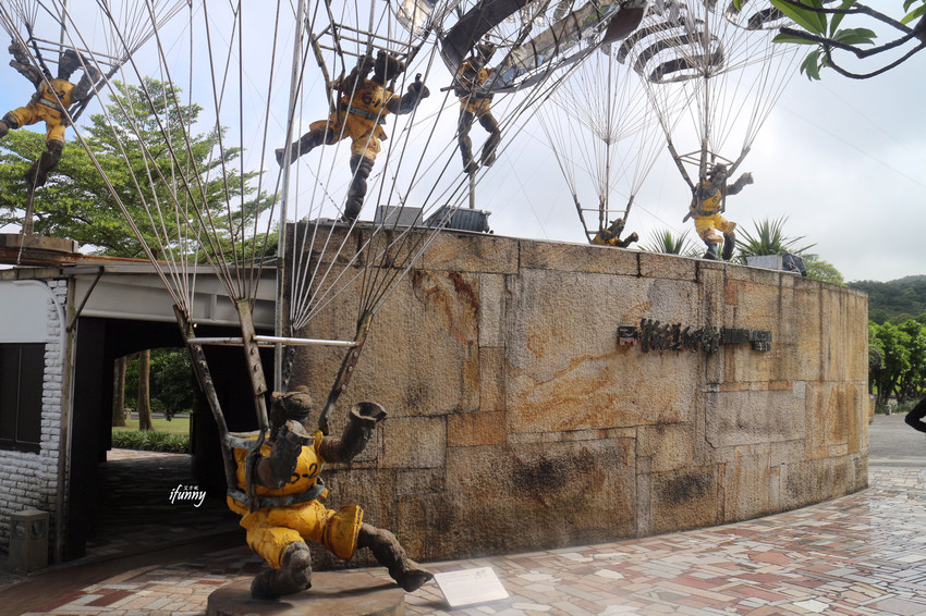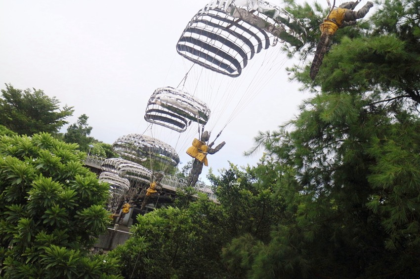 這一旁是利用地形,裝置一整排的跳傘員,令人看了也好想到天空中翱翔一番。