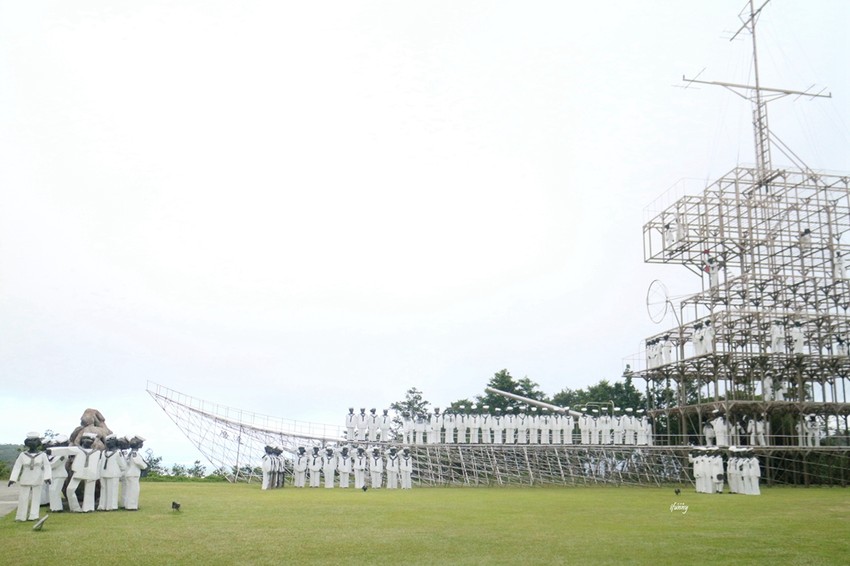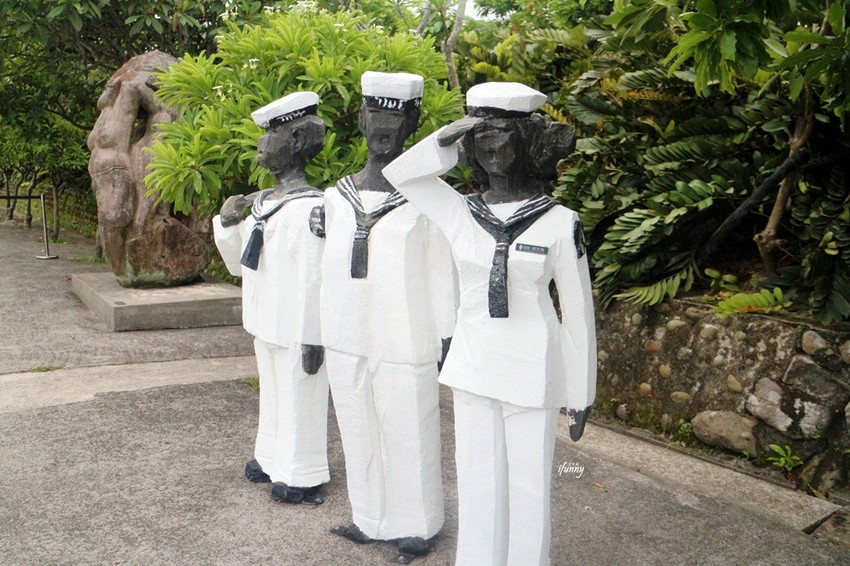 軍艦設置的位置正好與金山海灣的海景連成一線,看著看著真有軍艦開始滑行的錯覺呢!