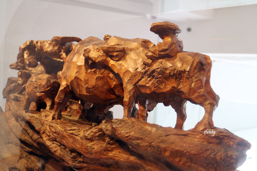 這是朱銘老師早期的創作,藉由五頭水牛的生動互動,突顯了水牛群體的團結。