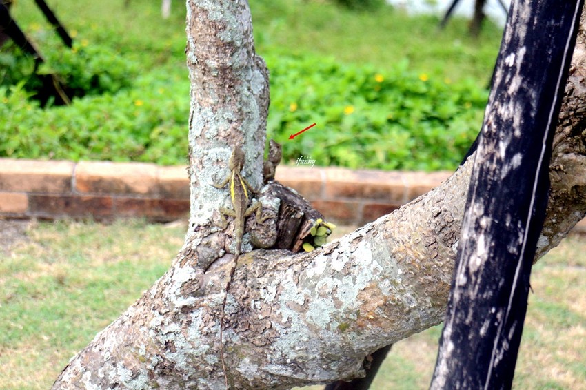 這是一旁的海檬果樹上的兩隻對峙的蜥蜴,這簡直就是生態教室來著的,這太好玩了嘛!