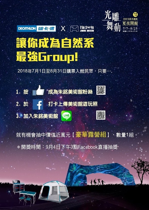 8/31前購票入館且完成上面指示程序,就有機會申中價值近萬元的<豪華露營組>喔!這也太吸引人了吧!豪華露營組>