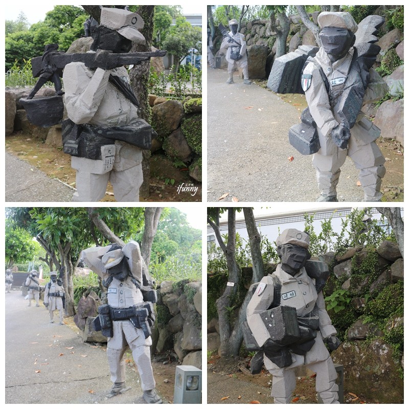 在石雕修復保存教育區行走時,會見到許多的行軍軍人。