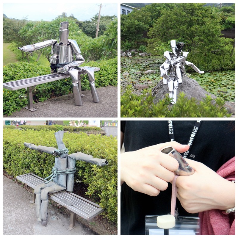 在園區逛累了,隨時都有人陪坐喔!朱銘老師利用車床技術,將不鋼鐵塑造可靠的椅背,讓堅硬的元素多了溫度。