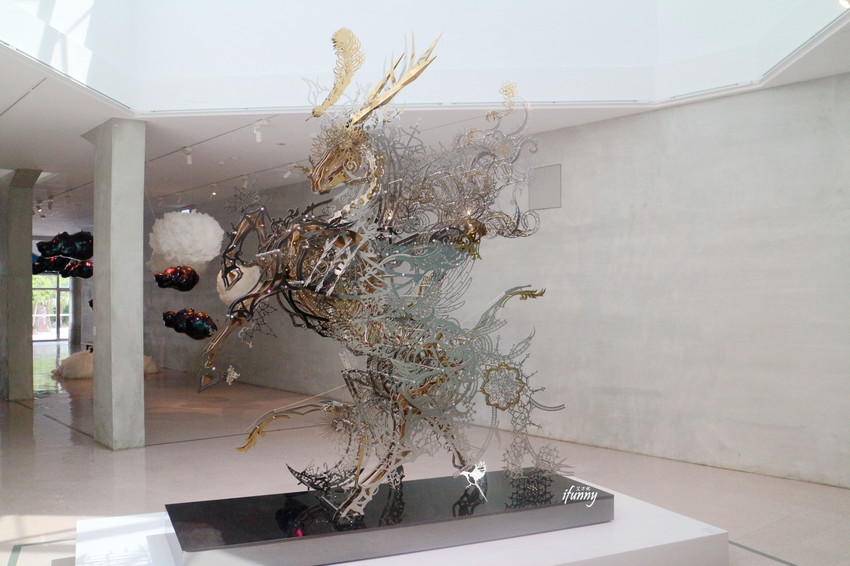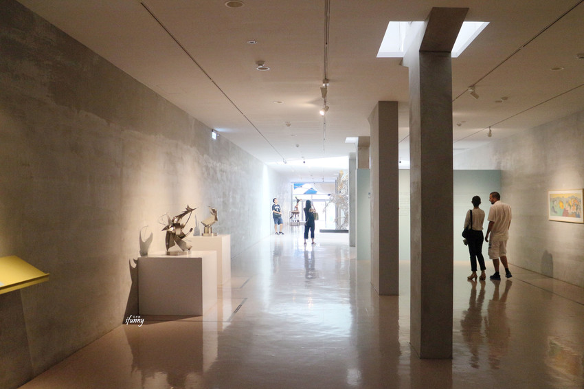 走下台階後,有如一般美術館的寬敞及簡約大方的設計空間即現在眼前。而且是很友善的美術館,並不會在作品前以實際的防護線擋住訪客,僅以地上的警示線來提醒,但藝術品還是需要大家的愛護,請千萬別觸摸也別破壞喔!