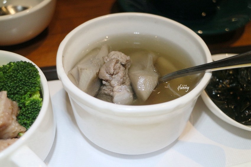 附湯也不隨便,是山藥排骨湯,清爽的滋味很適合炎熱的夏天。