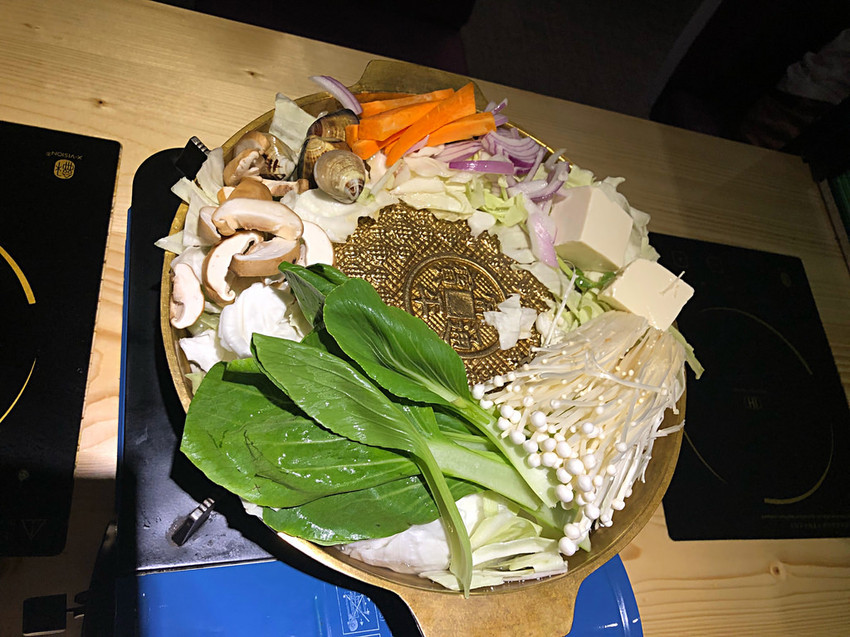 配料的部分都很新鮮,只是韓式銅盤烤肉火鍋的湯都繪滿鹹的