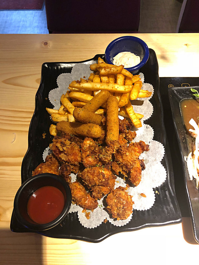 炸物拼盤整體來說,我覺得先吃會比較好,因為放一下冷掉後吃起來跟一開始吃的第一口口感會不同