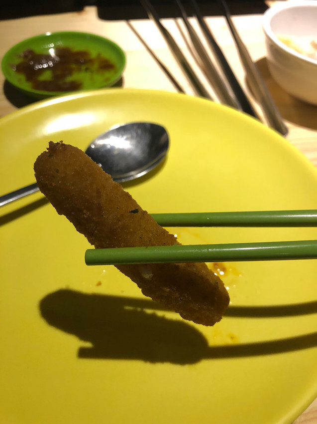 起司條的部分,起司會牽絲,外皮炸得很脆的,但可能是我們最後吃的關係,比較吃不出來跟一開始一樣酥脆