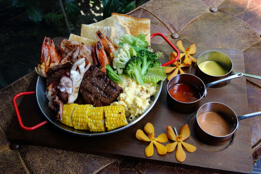 綜合雞、豬、牛、透抽、草蝦五樣食材的海陸大餐,一次品嘗到各種具人氣的豪華套餐
