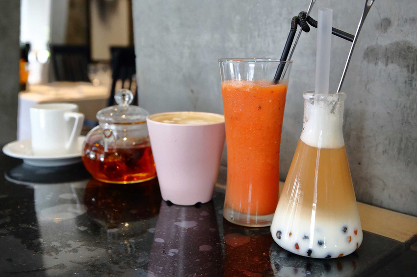 五彩珍珠奶茶+現打季節綜合果汁+南非國寶茶+拿鐵