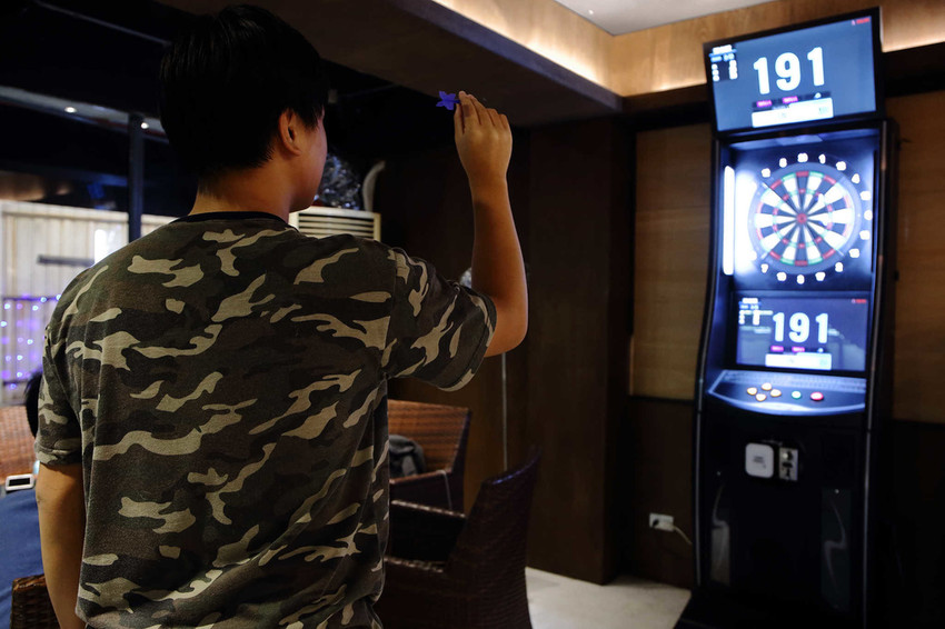 這兒的咖啡坊一進門一台射飛鏢機就佇立在店門口旁,多了點美式運動風格