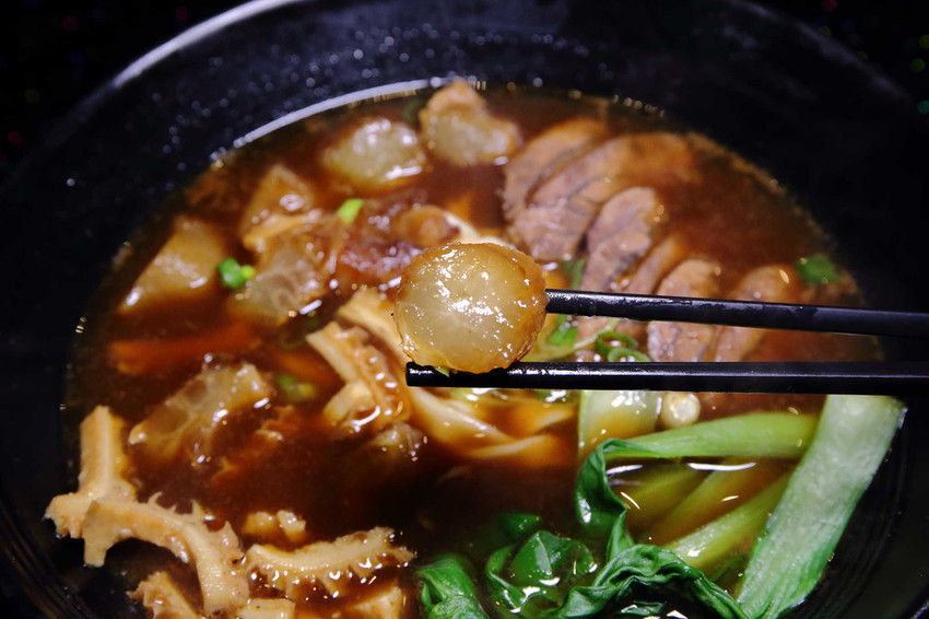 牛三寶分別有牛肚、牛筋、牛肉三種不同部份的牛肉,牛肉燉煮入味,很軟嫩;