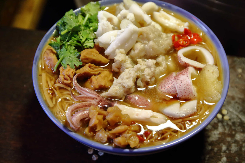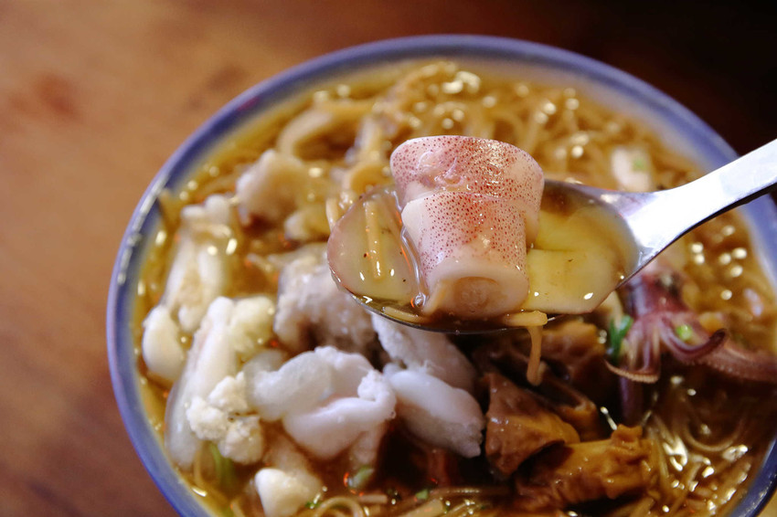這樣一大碗有滿滿的料,一整隻中卷,還有稀有的中卷蛋,完全看不到麵線,你知道賣多少錢嗎?