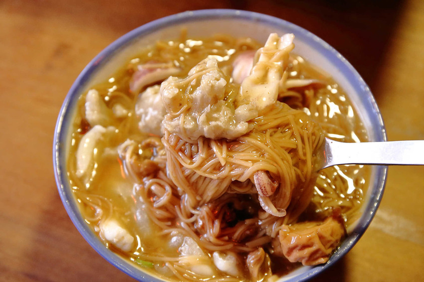 手工麵線吃起來不會過軟爛,本身的湯不會勾太多芡汁,