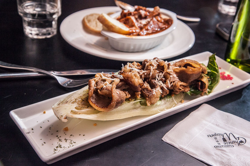 顛覆一般對於義式餃的想像,乍看之下還蠻像港式飲茶裡常見的鹹水餃,圓圓滿滿胖呼呼的還有薄脆的金黃外皮