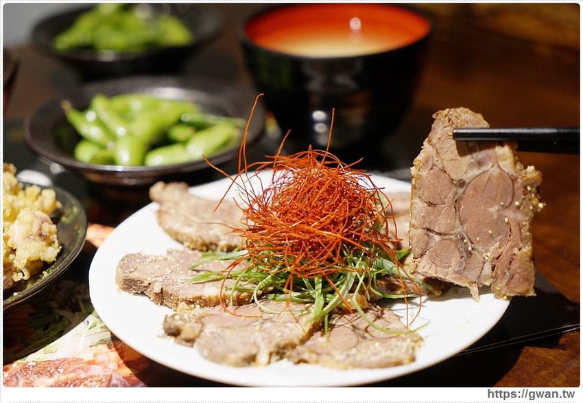 將燉透的牛舌以薄片方式呈現 吃起來有淡淡柚香,口感相當清爽