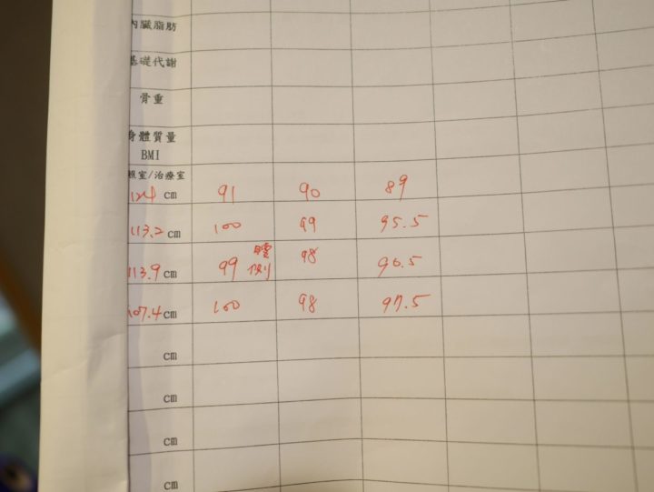 水哥大概是做兩塊區域, 分別對照兩塊區域位置的腰圍做三次測量(還沒做, 做三次, 與四次後一個月)