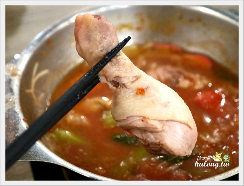 帶骨雞腿在蕃茄鍋底煮熟後的滋味更是可口,保留了雞肉原本的鮮嫩,茄香味在舌尖散發著