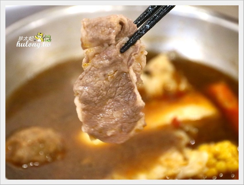 牛肉三寶不管搭配哪種湯底都好順口,其中的培根牛肉油質豐厚,涮在椒香麻辣鍋中特別的美味